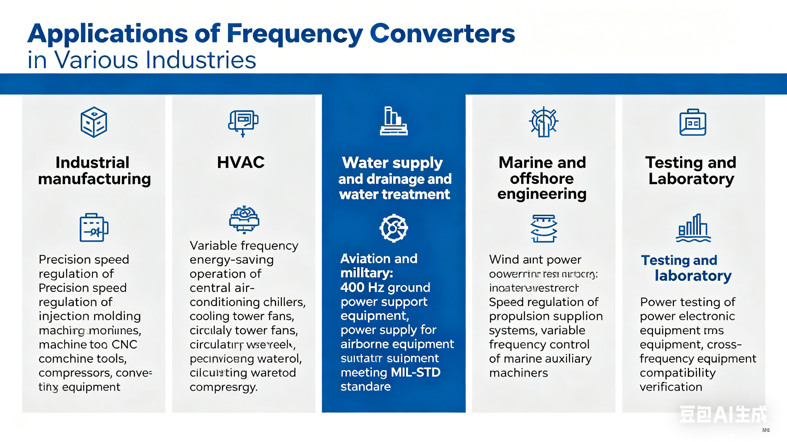 ◆ الفضاء الجوي والدفاع: معدات دعم الطاقة الأرضية بتردد 400 هرتز، والتي تزود الطائرات بمصادر طاقة على متنها تتوافق مع معايير MIL-STD؛